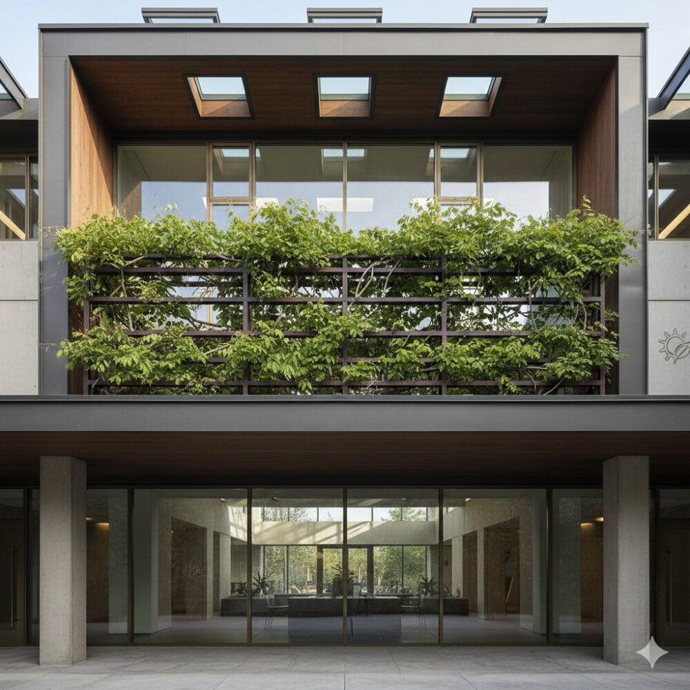 Lưới Che (Trellis) và Dây leo: Xây dựng các cấu trúc lưới che (Pergola) với các loại dây leo địa phương phát triển nhanh. Lớp cây xanh này hoạt động như một bộ lọc ánh sáng tự nhiên và bức xạ nhiệt, giảm nhiệt độ không khí bên dưới.